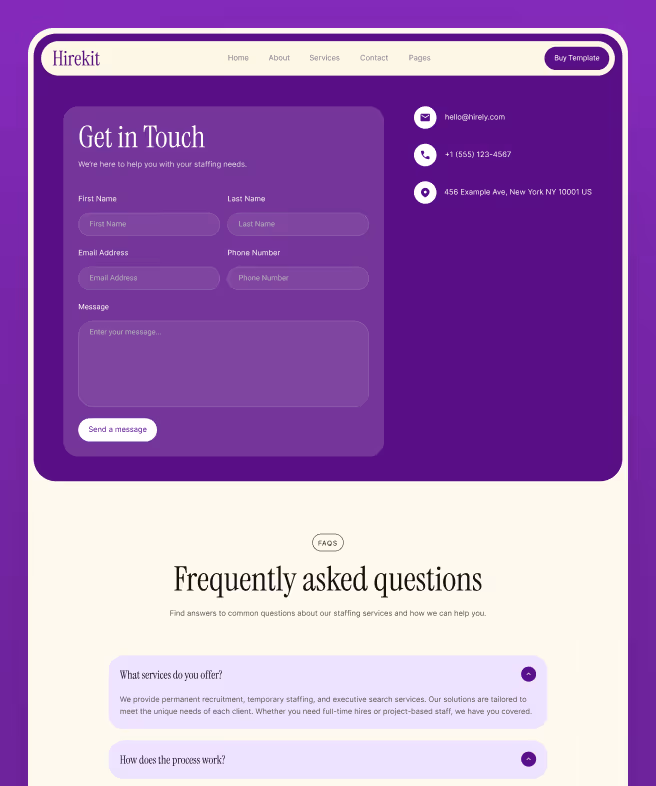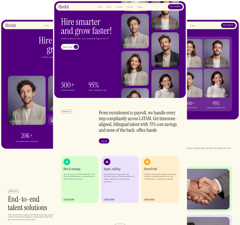 Take a look at the main pages included in the Hirekit Template.